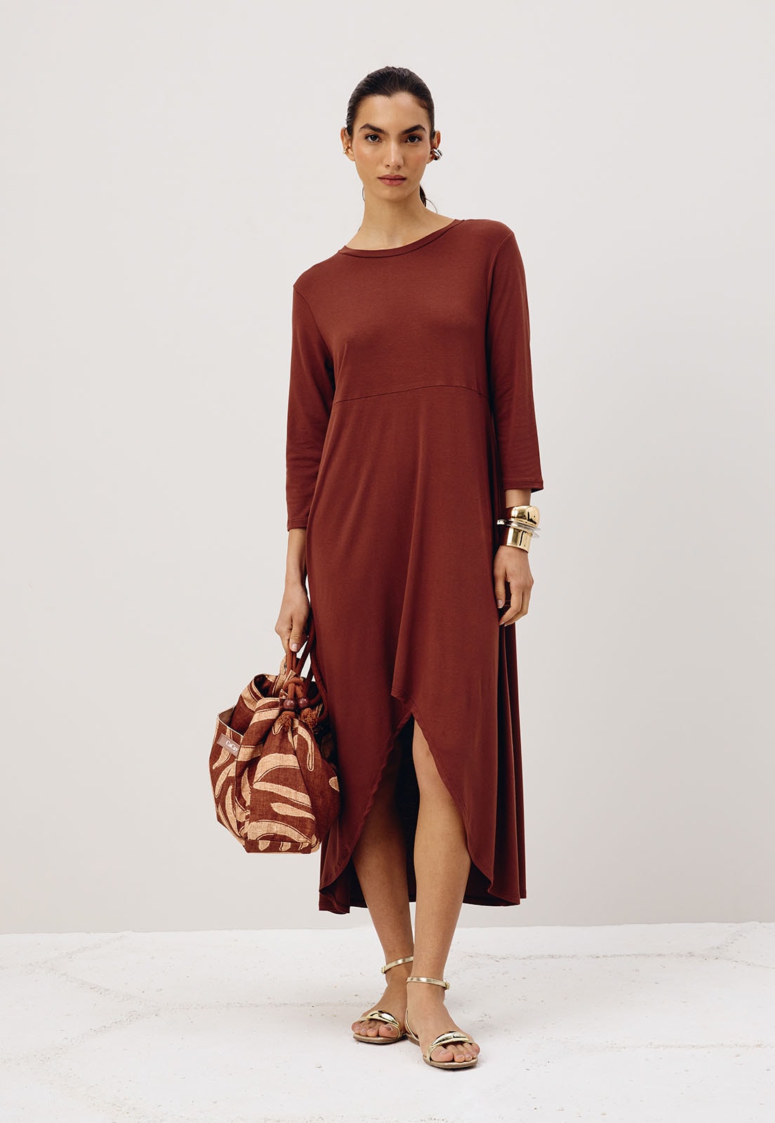 Com modelagem versátil, combina facilmente com sandálias rasteiras para um look descontraído ou com acessórios marcantes para uma produção mais elaborada. Aposte em bolsas estruturadas e brincos para elevar o visual.
