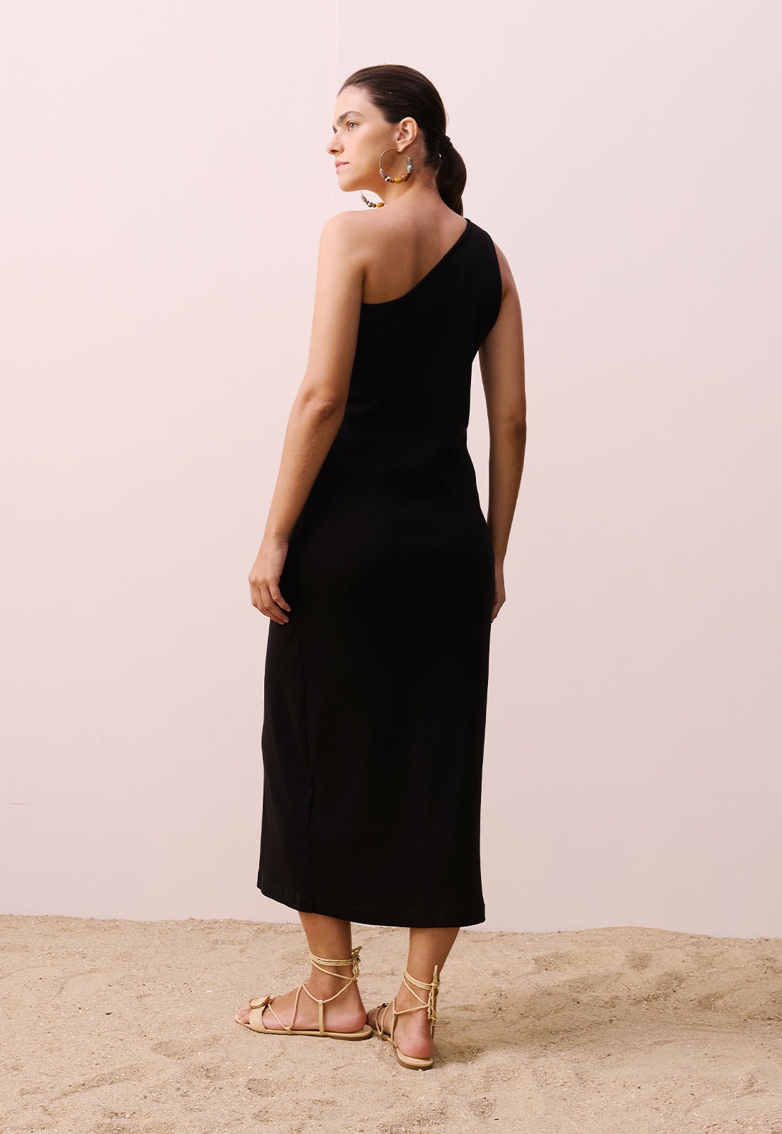 O Vestido Midi Ombro Só da CaCay é a expressão do equilíbrio entre sofisticação e fluidez. Com modelagem que valoriza a silhueta e comprimento midi que alonga a figura, a peça traz um caimento impecável e atemporal. O design de um ombro só confere elegância moderna, enquanto o acabamento sem mangas e a leveza do tecido garantem conforto e liberdade de movimento. Ideal para quem busca versatilidade, o vestido transita com naturalidade entre ocasiões casuais e eventos mais refinados. A modelo tem 1,77m e veste tamanho P, evidenciando como a peça se adapta bem a diferentes biotipos.