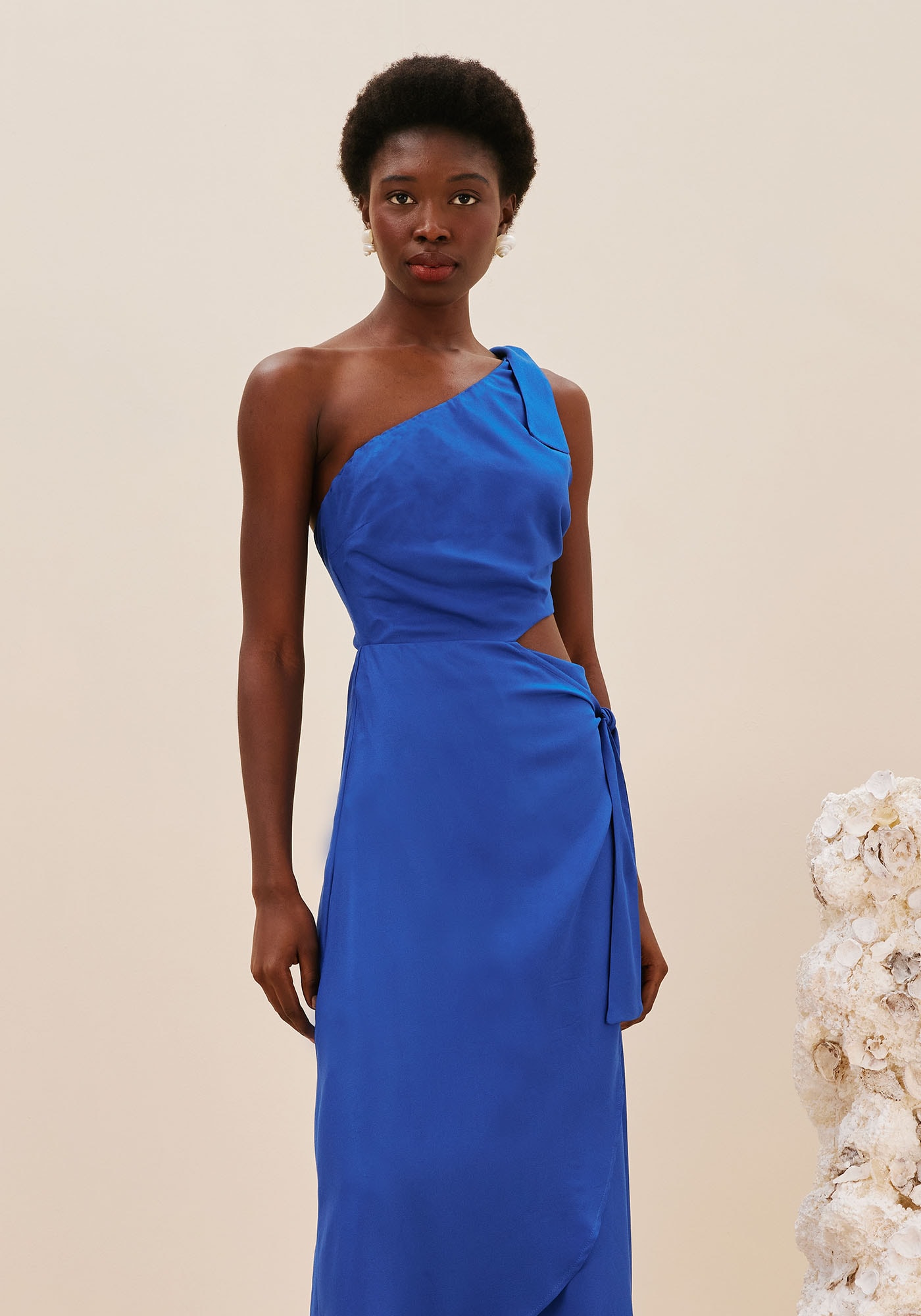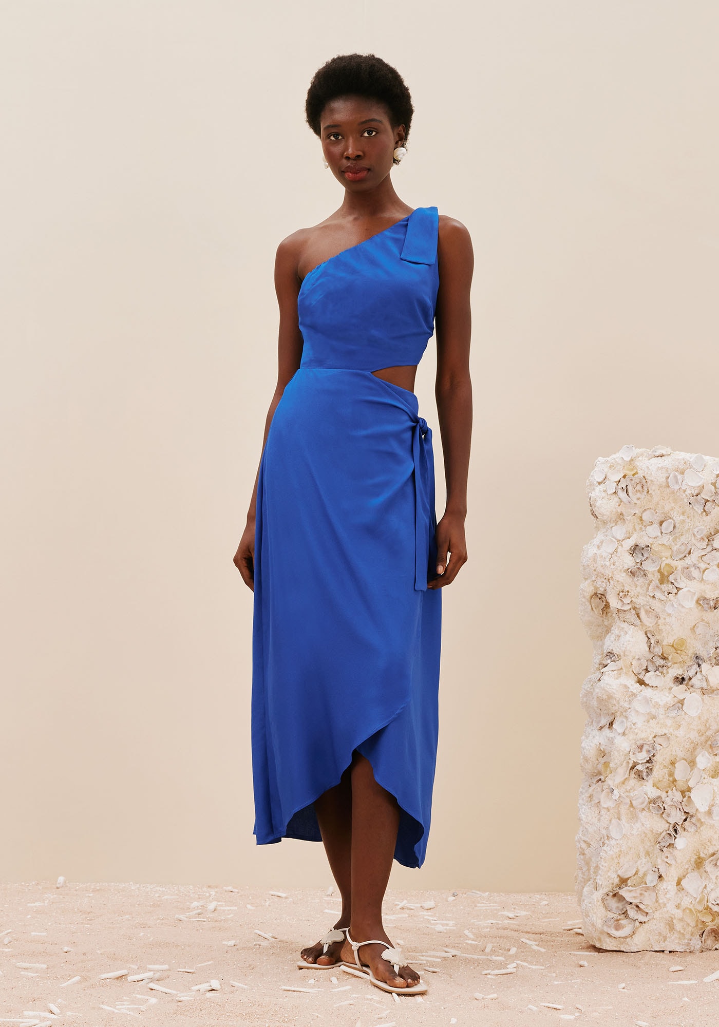O vestido liso é confeccionado em tecido 100% viscose.É um modelo moderno e charmoso de um ombro sóque possui amarração e saia transpassada. O recorte lateral na cintura é um detalhe que chama a atenção e dá um toque especial no vestido.