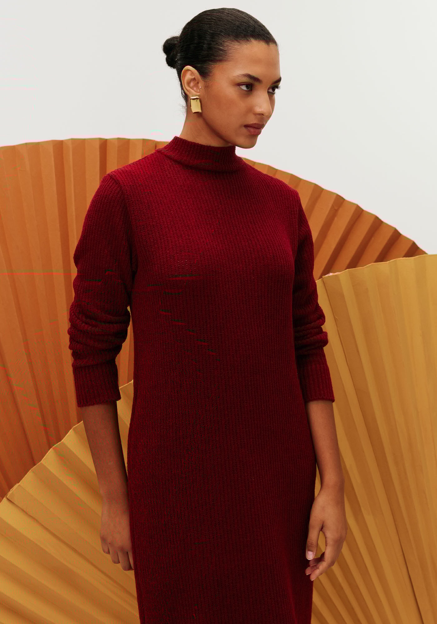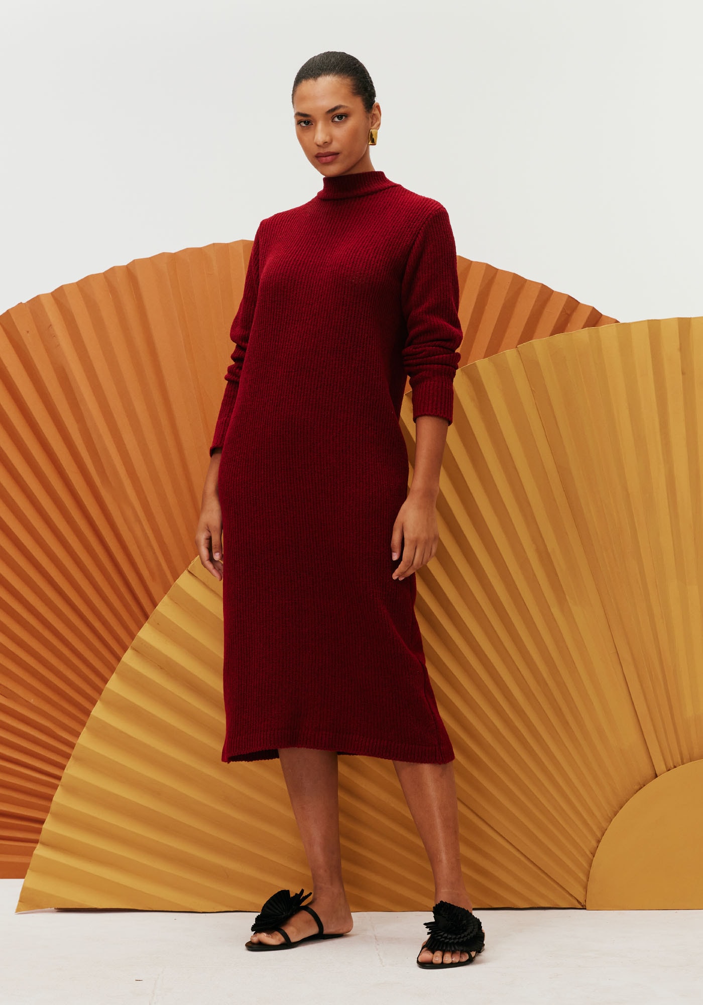 O vestido liso em tricot é a peçaperfeita para um inverno estilo. O modelo com comprimento midi é quentinho e possuimanga longa e gola, oferecendo mais conforto nesses dias.