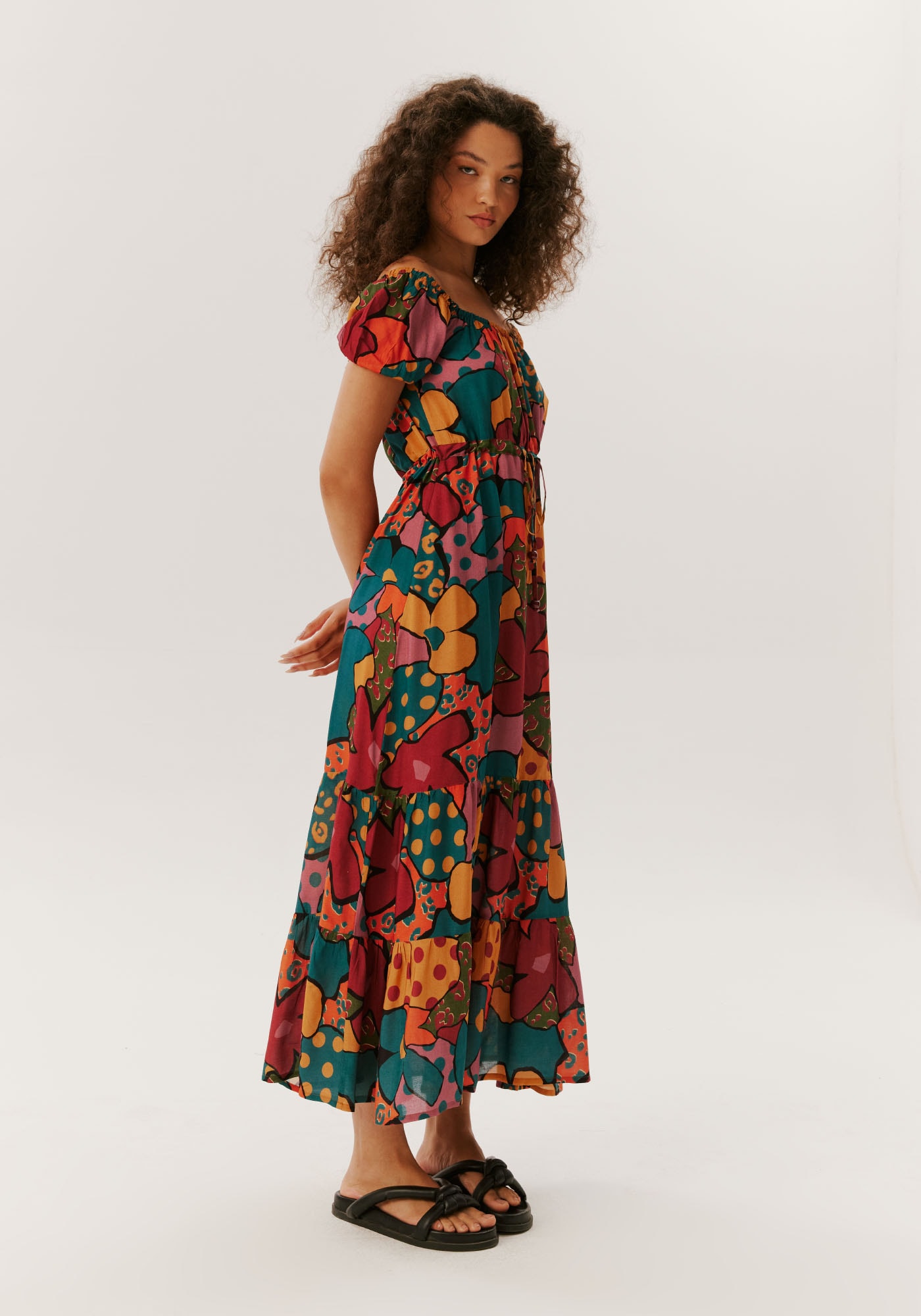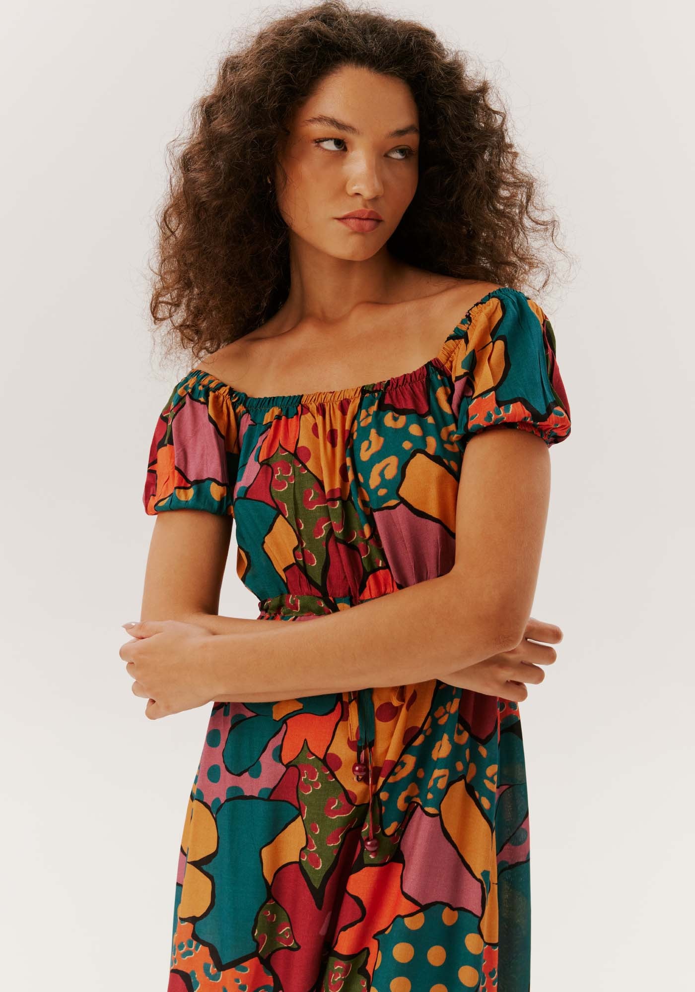 Elegante e versátil, este vestido ombro a ombro é feito emviscose e apresenta comprimento midi. O túnel abaixo do busto entrega melhorajuste ao corpo enquanto o shape solto na saia com marias oferece movimento. Omodelo é prático devido ao estilo garantido em apenas uma peça.