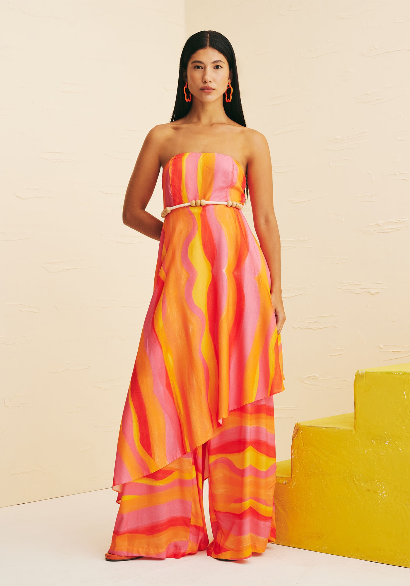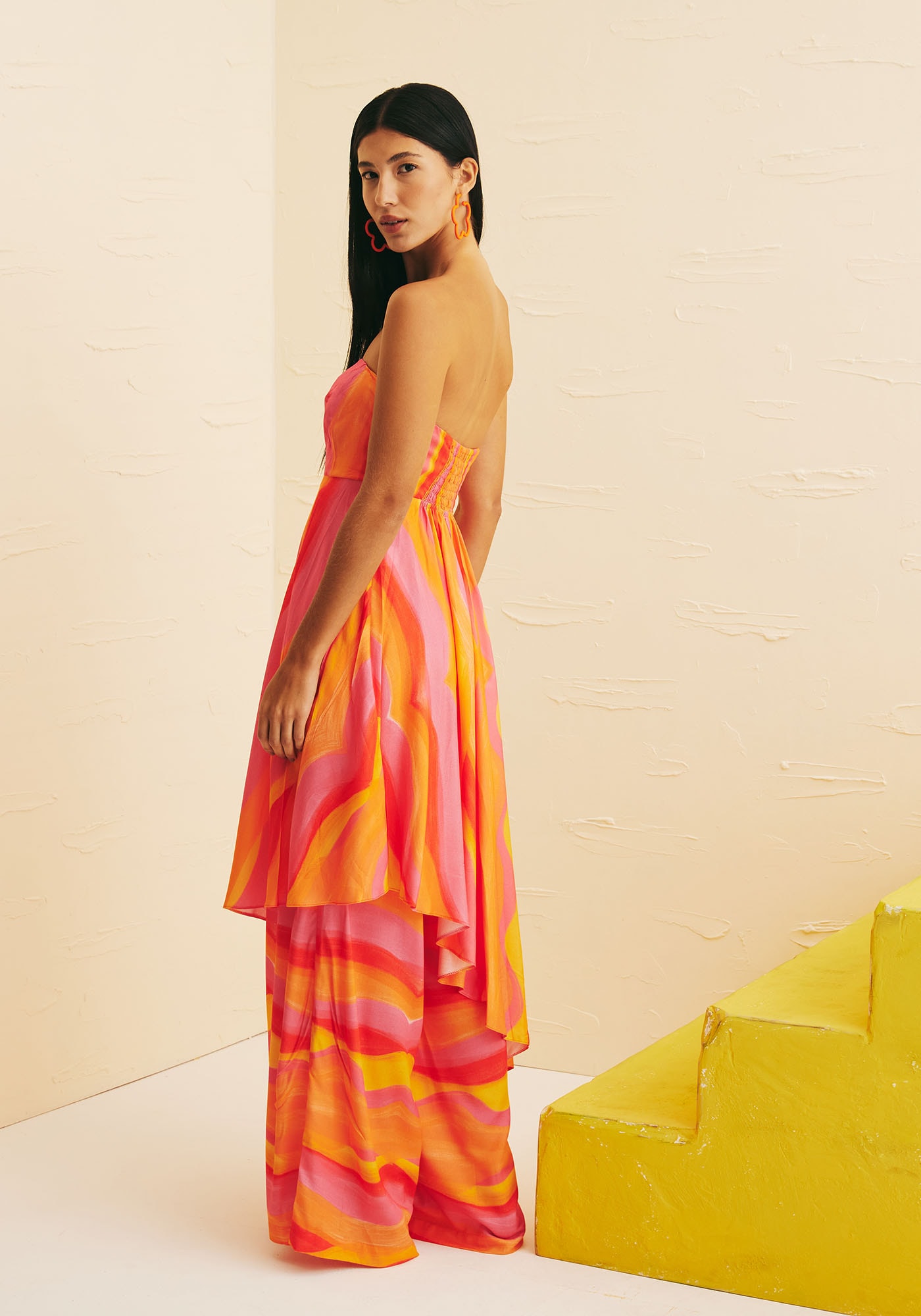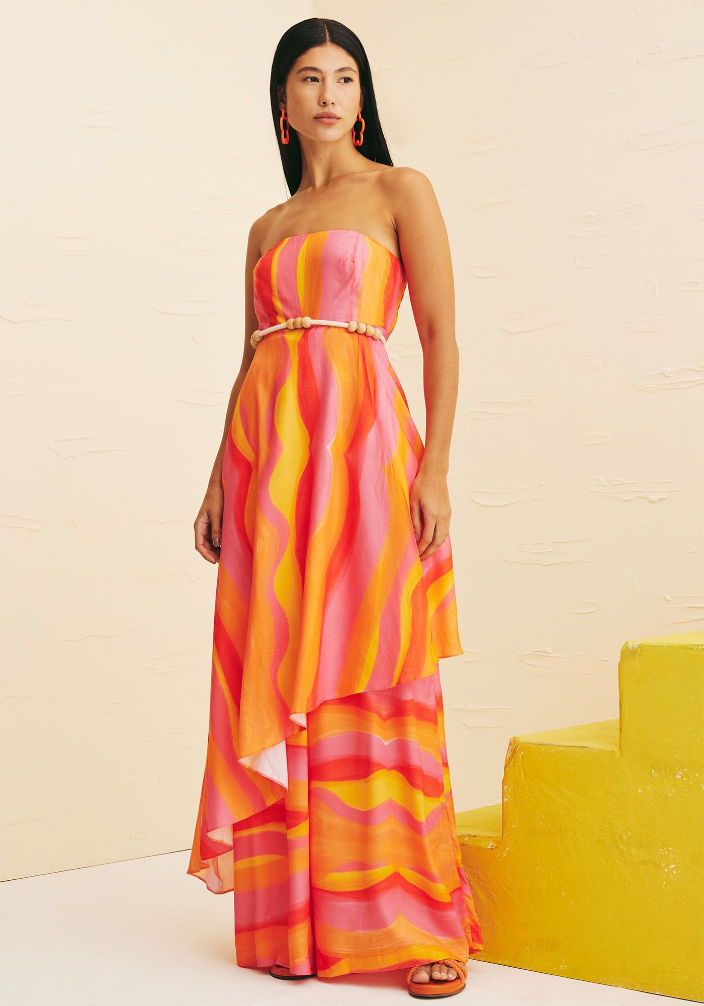 Confeccionado em tecido 100% viscose, ovestido tomara que caia é a cara do verão carioca. Com desenho assimétrico e shapereto, o modelo sem alças possui lastex nas costas, se adaptando perfeitamenteao corpo.
