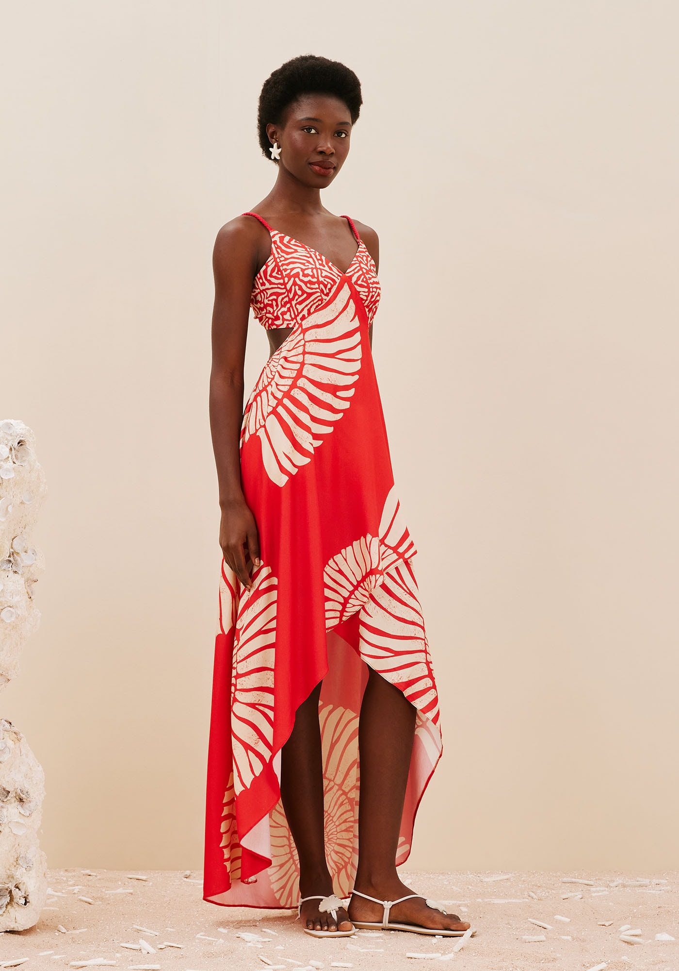 Confeccionado em tecido 100% viscose,o vestido transpasse é deslumbrante. O modelo é moderno e possui um mix entre asestampas Caracas e Costas dos Corais. O recorte lateral dá um toque ousado parao vestido, deixando as costas a mostra e as alças são em corda são o complementeperfeito para a peça. O decote valoriza o busto e pode ser regulado através daamarração em túnel na parte de trás.