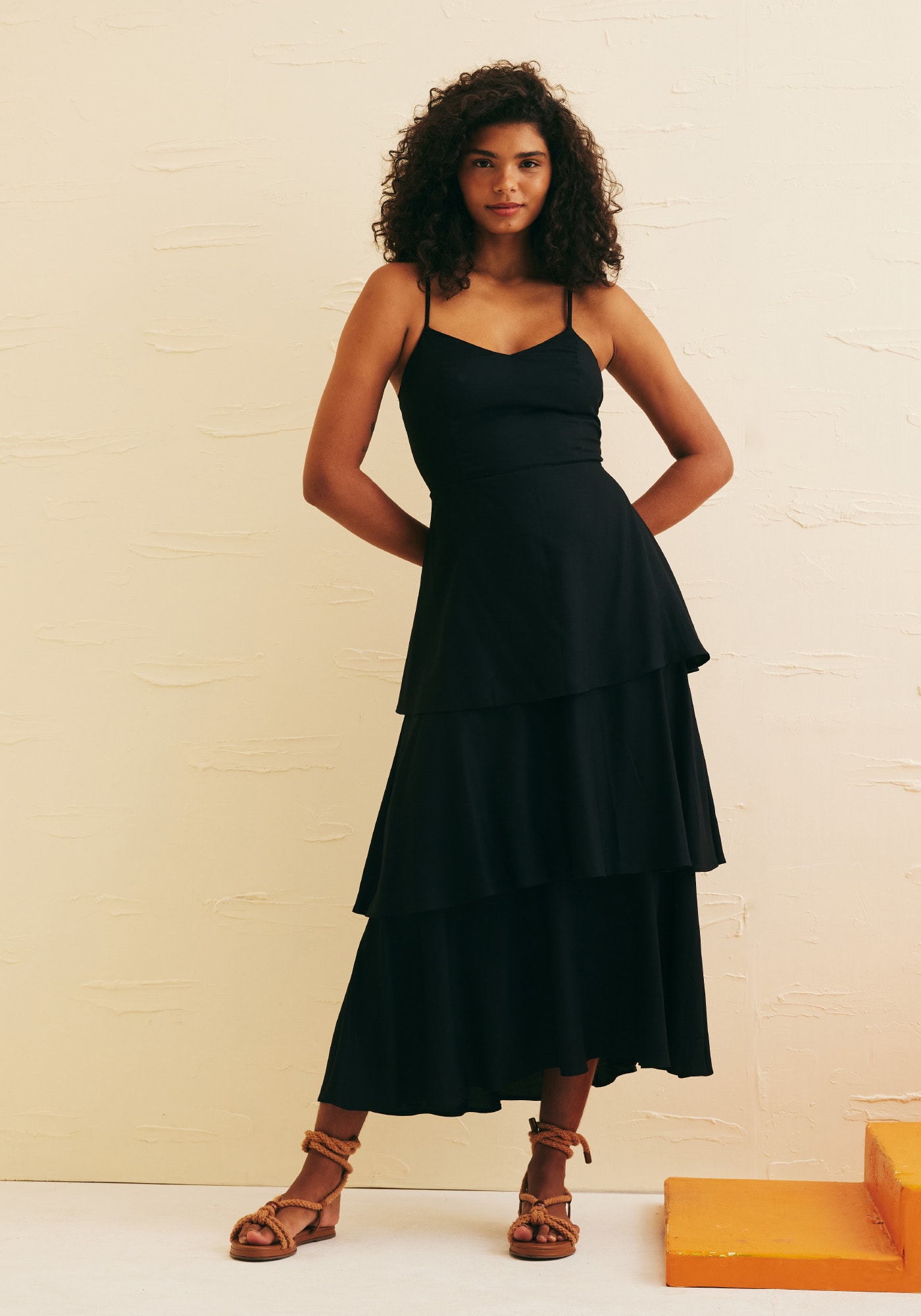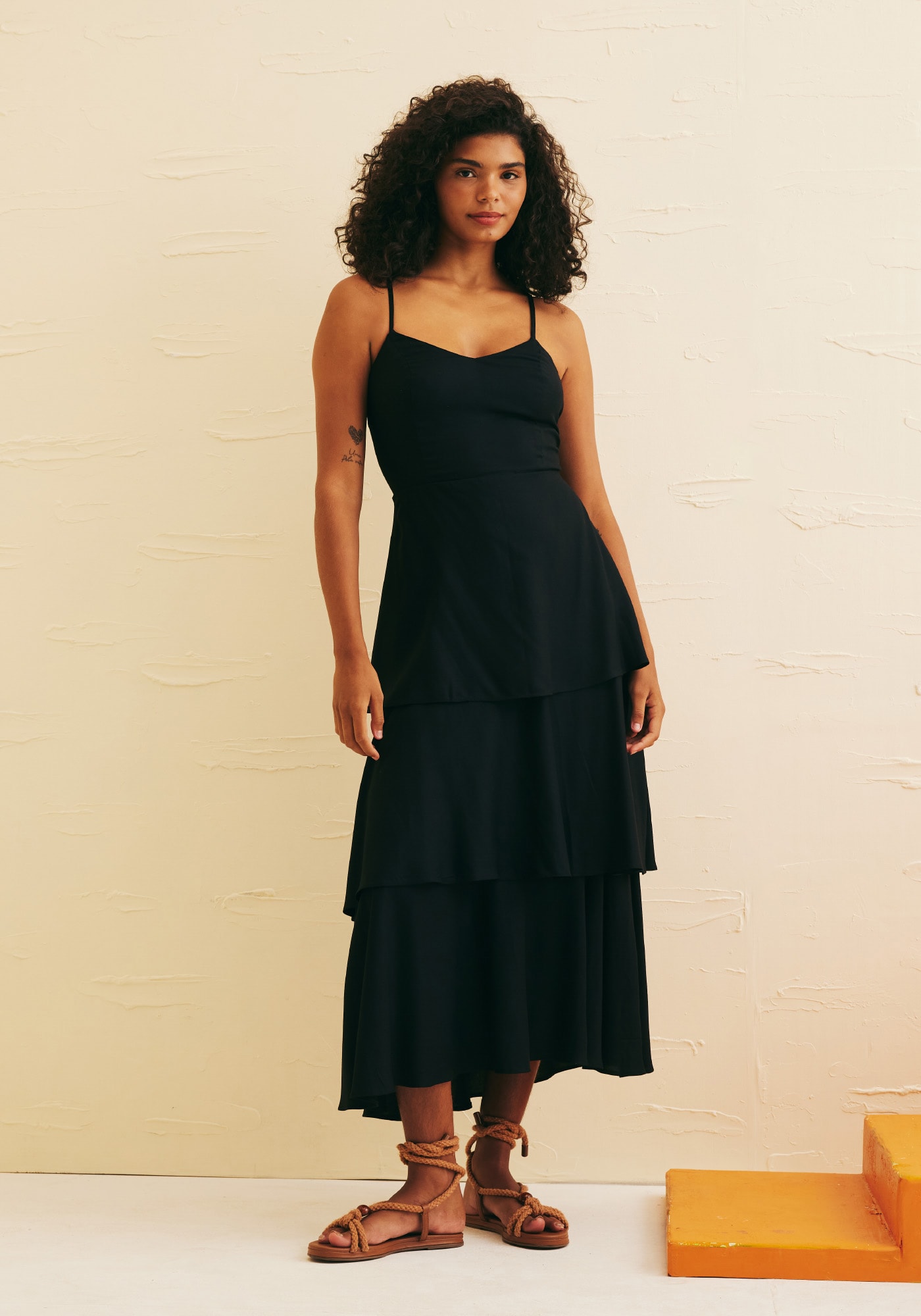 Nosso Vestido Liso 3 Babados éa escolha ideal para quem busca um visual leve e romântico. Confeccionado emtecido 100% viscose e no comprimento midi, este modelo possui três babados quetransmitem delicadeza, enquanto a sua amarração na parte das costas permite umajuste perfeito da peça ao corpo valorizando sua silhueta.